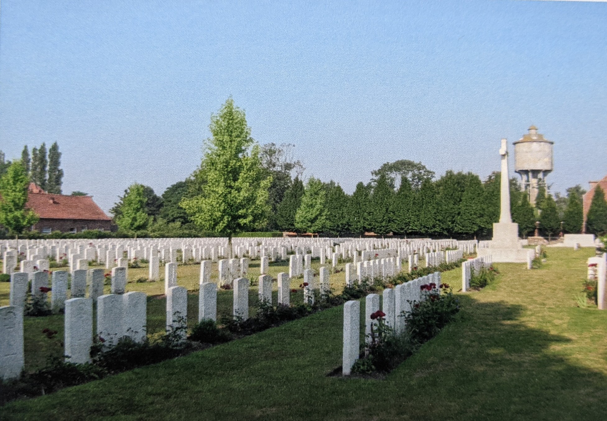 The villages of Etran and Duisans are about 9 km west of Arras. The cemetery lies in Etrun but takes its name from the nearer village of Duisans. Most of the 3,207 graves there relate to the Battle of Arras in 1917 and the trench warfare that followed.