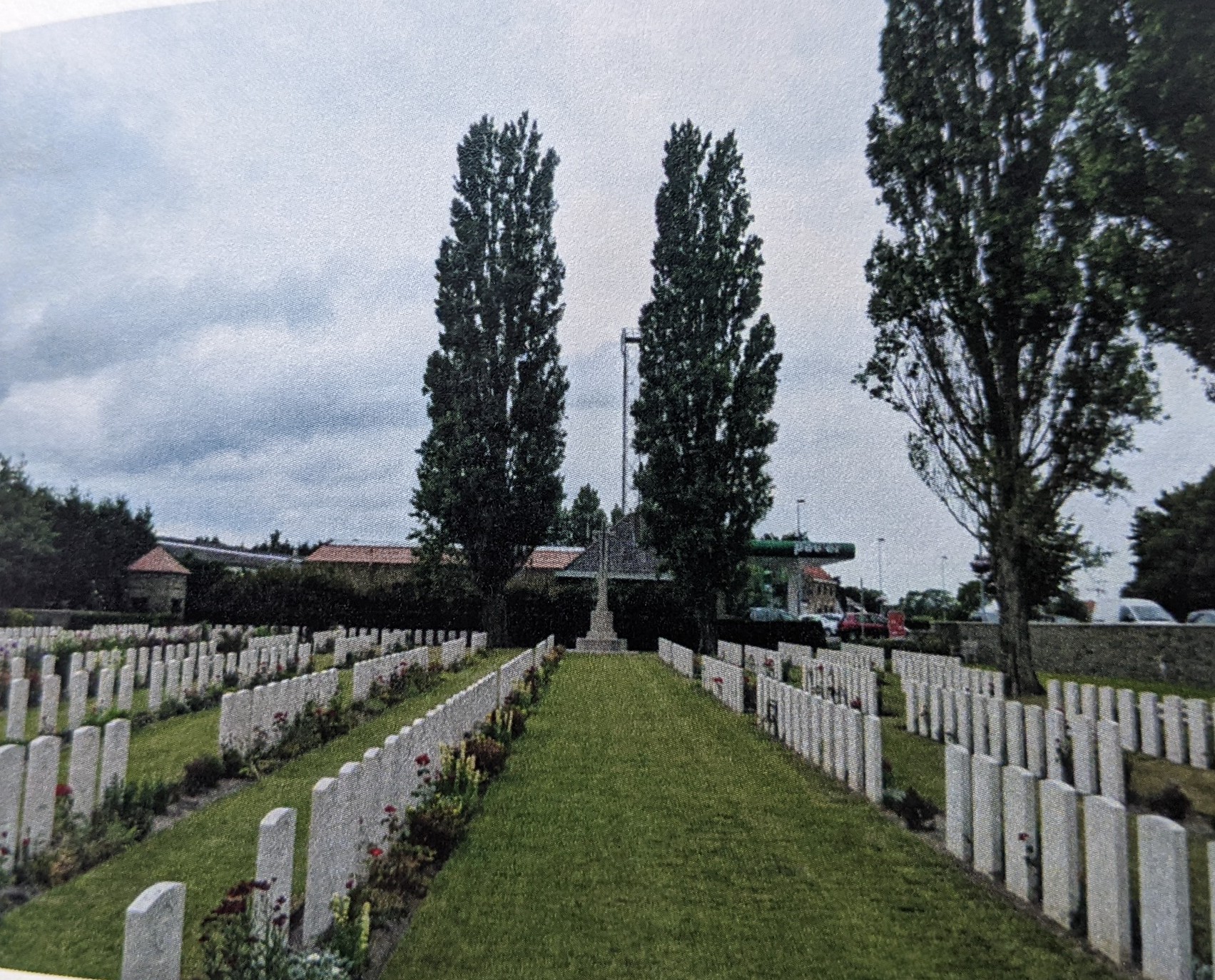 Buried at Ramscapelle Road Military Cemetery, Belgium. P 2. Row. A. Grave 30.