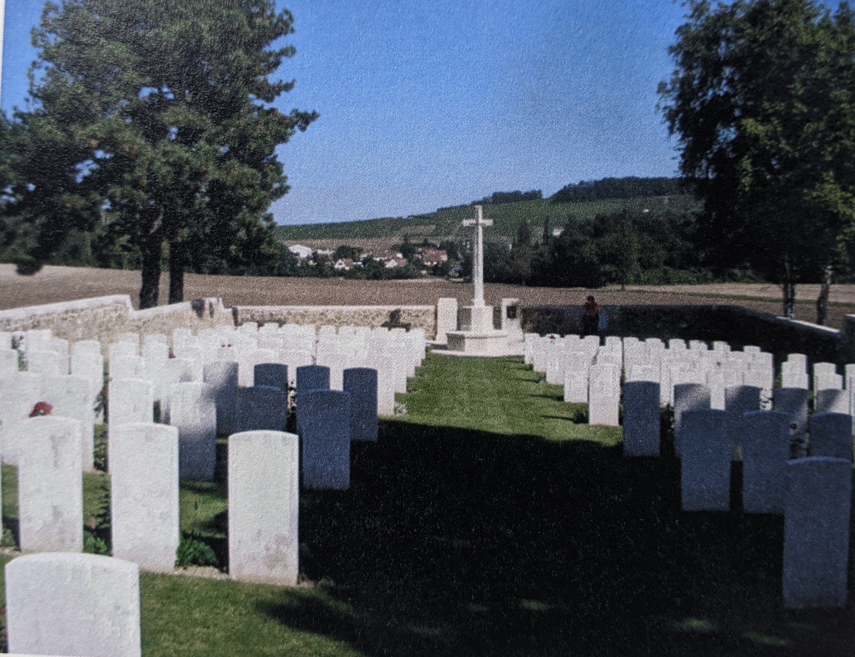 Courmas is a village 11km south west of Reims. The cemetery was made after the Armistice by the concentration of graves from Courmas Village and Courmas Chateau British Cemeteries, small cemeteries made by the 62nd (West Riding Division) after the fighting on the 20th July 1918, the date when Joseph was killed.