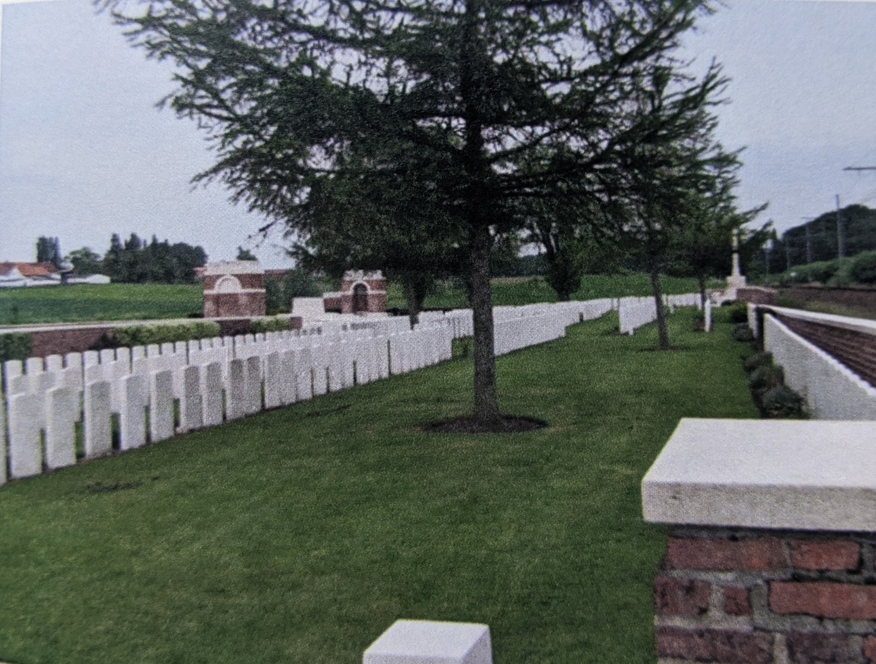The cemetery is 4km S.E. of leper (Ypres) town Centre. It was begun in April 1915 by a small larch plantation, and extended after the Armistice when graves were brought in from Ypres and other small cemeteries.
