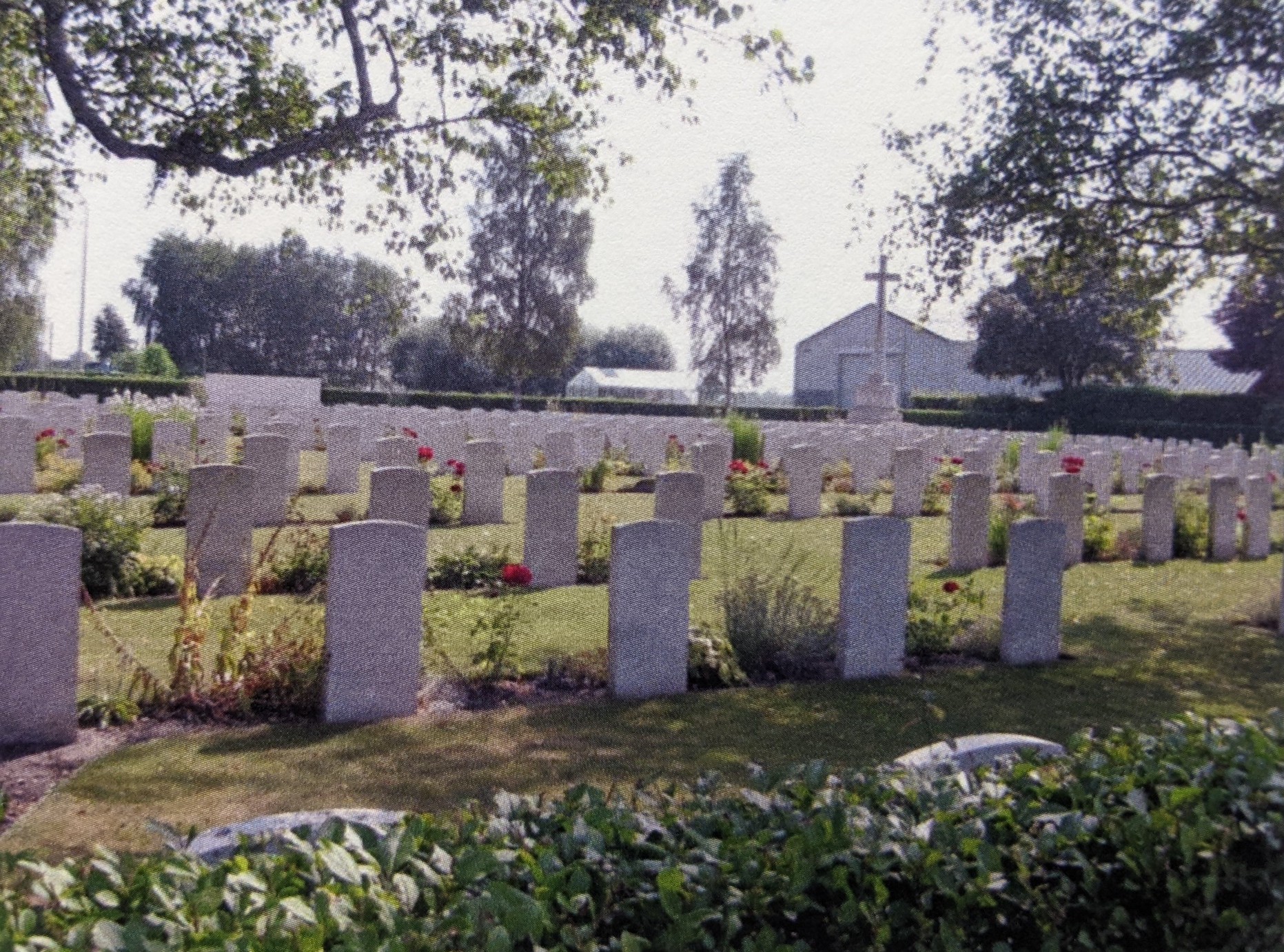 Buried at Brandhoek Military Cemetery, West Vlaanderen, Belgium. Plot 1. Row D. Grave 8.