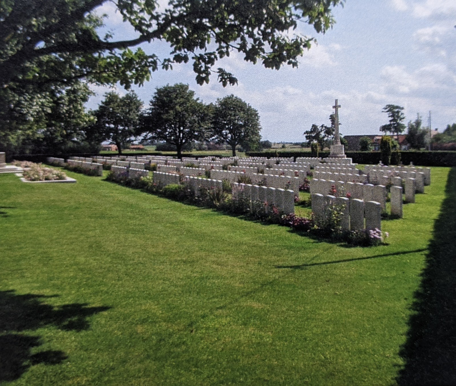 Designed by Sir Edward Lutyens the cemetery has 618 casualties. Esquelbecq is near the Belgium border, 24km north of Hazelbrouck and the same distance from Dunkirk.