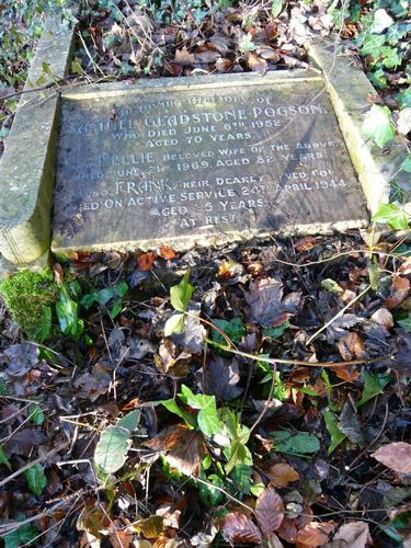 POGSON In Loving Memory of Samuel Gladstone Pogson, who died June 6th1952, aged 70 years. Also Nellie, beloved wife of the above, Died June 21st 1969, aged 82 years. Also Frank, their dearly loved son Died on active service 24th April 1944, aged 25 years. At Rest.