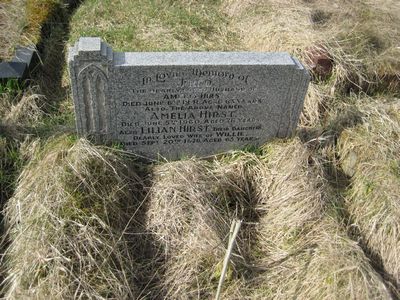 Sec 10 No 35 HIRST In Loving Memory of Fred, the dearly loved husband of Amelia Hirst, died June 6th 1941, aged 63 years Also the above named Amelia Hirst, died June 5th 1960, aged 76 years Also Lillian Hirst, their daughter dearly loved wife of Willie, died Sept 20th 1976, aged 63 years