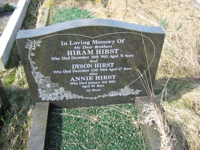 In Loving Memory of My dear brothers Hiram Hirst who Died December 30th 1963 aged 74 years