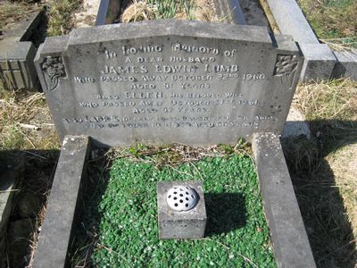 Sec 11 No 25 LUMB In Loving Memory of a dear husband James Edwin Lumb who passed away October 22nd 1960 aged 81 years Also Ellen, his beloved wife who passed away October 31st 1961 aged 82 years Also Laurie, dearly loved daughter of the above Died October 18th 1969 aged 66 years