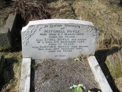 Sec 11 No 32 HOYLE In Loving Memory of Mitchell Hoyle, who Died 6th March 1955, aged 66 years Also Ethel Hoyle, his sister who Died 11th December 1956, aged 71 years Also Clifford Hoyle, their brother who Died 28th February 1966, aged 83 years “At rest”