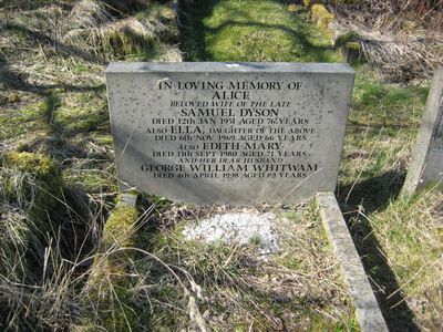 Sec 11 No 40 DYSON WHITWAM In Loving Memory of Alice beloved wife of the late Samuel Dyson Died 12th Jan 1951 aged 76 years Also Ella, daughter of the above Died 6th Nov 1969 aged 66 years Also Edith Mary Died 11th Sept 1980 aged 71 years And her dear husband George William Whitwam Died 4th April 1998 aged 89 years