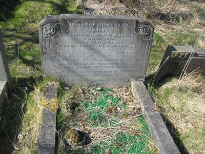Sec 11 No 41 EVANS Treasured Memories of Robert, dearly loved husband of Marian Evans, of Bethel Villa, and a beloved father, who Died Jan. 2nd 1951 aged 59 years Also of the above Marian Evans, who Died Sept 13th 1969, aged 78 years Also Bernard Inglis elder son of the above and dearly loved husband of Ella who Died May 24th 1976, aged 60 years Also Ella, dearly loved wife of Bernard, who Died Feb 11th 1987, aged 70 years “O touch those chords again”