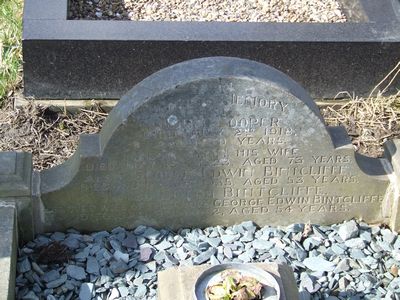 Sec 2 No 52 COOPER BINTCLIFFE In Loving Memory of John Cooper died July 2nd 1918, aged 70 years Also Ann his wife died May 15th 1923, aged 73 years Also George Edwin Bintcliffe died June 28th 1935, aged 53 years Also Edith Bintcliffe beloved wife of the above George Edwin Bintcliffe died Jan 9th 1942 aged 54 years