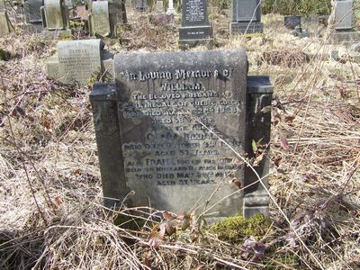 Sec 2 No 58 IREDALE In Loving Memory of William the beloved husband of Clara Iredale of Quebec, Golcar who died August 2nd 1928, aged 58 years Also the above Clara Iredale who died October 9th 1930 aged 57 years Also Frank, son of the above & beloved husband of Alice Iredale, who died May 20th 1935 aged 37 years