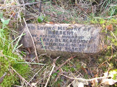Sec 2 No 68 BLACKBURN In Loving Memory of Herbert the beloved husband of Clara Blackburn who Died Dec 18. 1918, aged 41 years. Also of Mary Ann daughter of Alfred & Jane Armitage Born Au 28. 1850 Died Nov 14. 1927. Also of Clara beloved wife of Herbert Blackburn who Died Jan 17. 1968, aged 87 years. Also of Annie Blackburn daughter of Herbert & Clara who Died Jan 10. 1985 aged 78 years. Christ will clasp the broken chain closer we meet again.