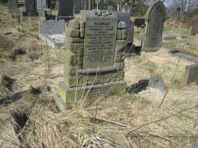 Sec 3 No 20 SHAW In Loving Memory of Hannah the beloved wife of Thomas Shaw of Wilberlee died May 25th 1904 aged 49 years Also the above Thomas Shaw died Oct. 10th 1931 aged 76 years Also Hervey, beloved husband of Susannah Shaw and son of the above died Jan. 29th 1939 aged 51 years Also Susannah his dearly loved wife died May 28th 1984 aged 94 years Also their beloved daughter Edith died Jan 18th 1989 aged 73 years