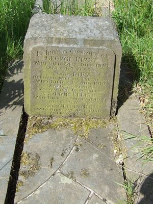 Sec 5 No 38 HIRST In Loving Memory of George Hirst who died 24th July 1910 aged 64 years Also MARY beloved wife of the above Who died 20th Aug 1919 aged 73 years Also their daughters Sarah Ellen who died 9th March 1941 aged 65 years And Alice Ann who died 7th June 1950 aged 75 years