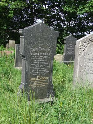 Sec 5 No 64 PEARSON LOCKWOOD In Loving Memory of Enoch Pearson of Outlane Moor who died Jan 18th 1907 aged 61 years Also of four children who died in infancy Also Elizabeth the beloved wife of Enoch Pearson who died March 20th 1924 aged 78 years Also Lilian Lockwood Grand-daughter of the above who died March 3rd 1984 aged 64 years