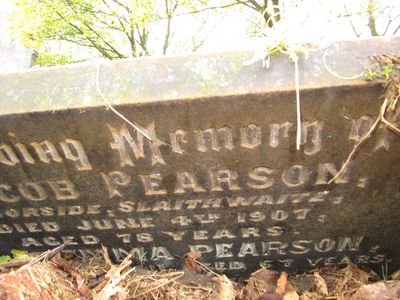 In Loving Memory of Jacob Pearson, Moorside, Slaithwaite, Died June 4th 1907, aged 78 years.