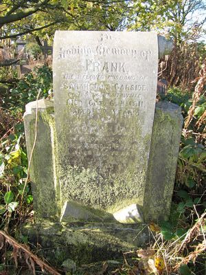 In Loving Memory of Frank, the beloved husband of Sarah Jane Garside, of Thorps, Slaithwaite, died Oct 6th 1911 aged 37 years