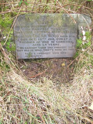 Sec 6 No 19 WOOD In Loving Memory of William beloved husband of Sarah Wood of Daisy Lea, Outlane died June 29th 1916 aged 52 years Also Pte. Edgar Wood their son died Oct 19th 1918 whilst a prisoner of war in Germany aged 24 years “We cannot Lord thy purpose see but all is well that’s done by thee” Also 2 children who died in infancy