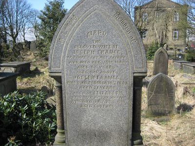 Sec 6 No 47 FRANCE In Loving Memory of Mary the beloved wife of Joseph France, of Scapegoat Hill, Golcar, who died Aug. 23rd 1889, aged 66 years Also the above Joseph France, who did October 10th 1891, aged 71 years Also of Elizabeth, daughter of the above who died July 27th 1910, aged 61 years