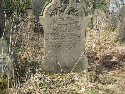Sec 6 No 8 WHITWAM In Loving Memory of John Whitwam, of Scapegoat Hill, Golcar, who died Sept 19th 1893, in his 59th years “Having loved the habitation of thy house, and place where thine honour dwelleth” Psalms 26 v2 Also Ann, wife of the above of Bankfield Terrace, Golcar who died Sep. 23rd 1912, aged 73 years