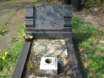 Sec 7 No 30 THORNBER SYKES In Loving Memory of Minerva daughter of Thomas H. & Betty Thornber of Scape Goat Hill Born May 18th 1905 ~ Died Dec 15th 1906 Also the above Thomas Henry Thornber Died Oct 6th 1940 aged 75 years Also the above Betty Thornber Died April 11th 1949 aged 83 years Also their daughter Annie Maud & beloved wife of Herbert Sykes Died Aug 20th 1947 aged 49 years Also Percy Sykes so of the above Died March 6th 1964 aged 69 years