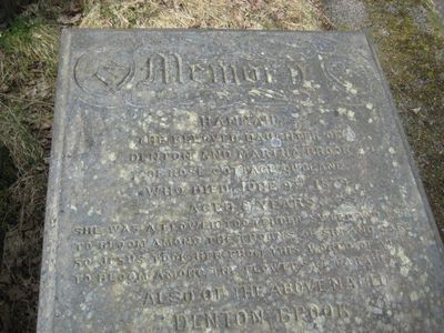 Sec 8 No 30 BROOK In Memory of Hannah the beloved daughter of Denton and Martha Brook of Rose Cottage, Outlane who died June 9th 1879 aged 8 years “She was a flower too tender, sweet and fair, to bloom among the thorns of sin and care, so Jesus took her from this world of vice, to bloom among the flowers of paradise” Also of the above named Denton Brook who died January 23rd 1901 aged 53 years Also of the above named Martha Brook who died October 6th 1918 aged 77 years