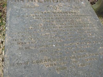 Sec 9 No 7 SINGLETON In Memory of Peter Singleton of High Street, Scape Goat Hill, Golcar who died July 31st 1878 aged 44 years A Loving Father and