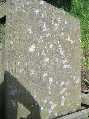 Here lieth the body of Mary the wife of Abraham Taylor of Booth Bank Slaithwaite who departed this life on the 11th day of February 1808 in the 61st year of her age. Also near this tomb lie the remains of Betty the wife of Edmund Haigh of the above place who departed this life 16th day of May 1822 aged 46 years. Also of Abraham Taylor who departed this life 4th day of October 1829 aged 82 years. Also of the above Edmund Haigh who departed this life 13th November 1856 aged 75 years.
