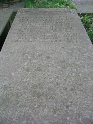 Grave A111 BOTTOMLEY In Memory of James Bottomley of West End Slaithwaite who died April 30th 1861 aged 65 years. Also of Sarah his wife Born July 15th 1794 Died January 22nd 1880. Also of John, their son Born April 27th 1819 died December 13th 1897. Also of Sarah wife of the above John Bottomley Born October 18th 1824 Died September 25th 1907.