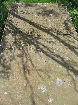 In Memory of Sarah Cock the wife of Elias Cock of Booth-Bank in Slaithwaite who changed this transitory life on the 16th day of July in the year of our Lord 1799 in the sixty second years of her age. Also Elias Cock who departed this life February 20th in the year of our Lord 1824 aged 90 years 11 months. As you pass by cast your eyes and look As you are new so once was I As I am new soon you must die Pray that the Lord would prepare you to follow me.