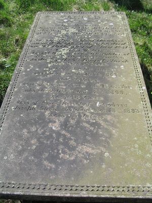 Grave A56 SHAW Sacred to the memory of Joseph Shaw of Clough in Golcar who departed this life on the 21st day of March 1842, aged 73 years. Also Alice wife of the above named Joseph Shaw who Died on the 10th day of May 1851 aged 85 years. Also of Elizabeth, daughter of Joseph and Alice Shaw of Belle Vue who died on the 9th day of March 1858 aged 23 years Also of Martha Shaw who died March 20th 1863, aged 18 years. Also of Joseph Shaw of Bell_vue who died December 3rd 1869, aged 68 years. Also of Alice relict of the above Joseph Shaw who died Nov. 18th 1883 aged 73 years.
