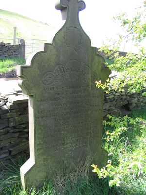 Grave A99 BROADBENT In Memory of John Broadbent of Stainland who died March 23rd 1869 aged 80 years. Also of Sarah his wife who died January 22nd 1861 aged 68 years Also of William grandson of the above who Died Oct. 10th 1870 aged 8 years and 8 months. Also of Tom grandson of the above who Died Jan. 26th 1873 aged 14 years. |