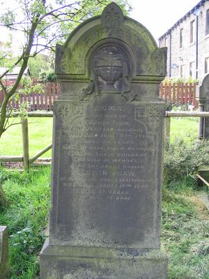 Grave E106 SHAW In Loving Memory of Emma the wife of Edwin Shaw of Dyke End, Golcar who died June 3rd 1878 aged 34 years Also of Jane, Willie, Wood and Joseph their children who died in infancy Also the above named Edwin Shaw who died August 18th 1908 aged 67 years “Thy will be done”