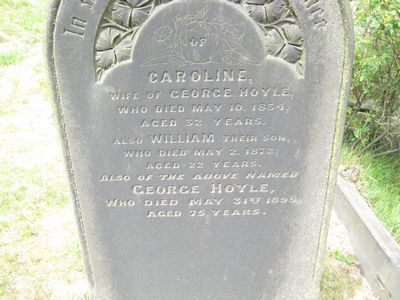 In Loving Memory of Caroline wife of George Hoyle who died May 10 1854 aged 32 years