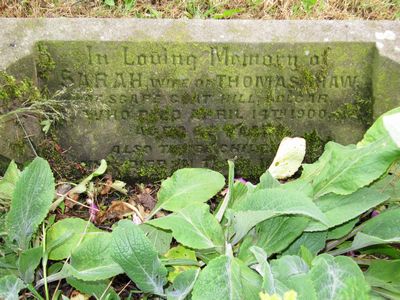 In Loving Memory of Sarah wife of Thomas Shaw of Scape Goat Hill, Golcar who died April 14th 1900 aged 63 years