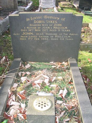 In Loving Memory of Doris Sykes beloved wife of John and mother of Joan and Malcolm, Died 18th Nov. 1977 aged 71 years.