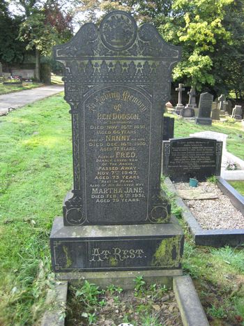 Loving Memory of Ben Dodson of Slaithwaite Died Nov 16th 1891 aged 66