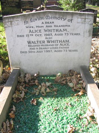 Also Walter Whitham beloved husband of Alice, and a dearly loved Father died 30th July 1997 aged 73 years.