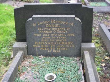 In Loving Memory of Daniel beloved husband of Hannah O’Grady Who died 19th April 1964 aged 74 years