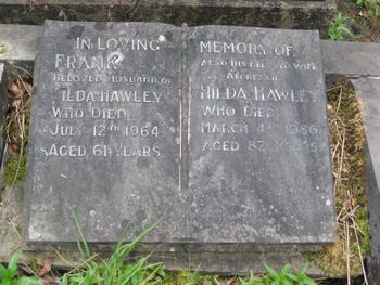 Also his beloved wife Hilda Hawley Who died March 4th 1986 aged 82 years