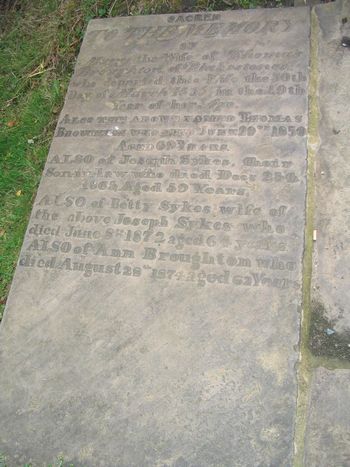 of Betty Sykes wife of the above Joseph Sykes who died June 8th 1872