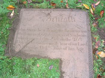 Beneath this stone lie waiting the Resurrection, The remains of Joseph Eastwood of Slaithwaite. Who departed this life on the 26th day of November in the year of our Lord 1796 in the 64th year of his age.