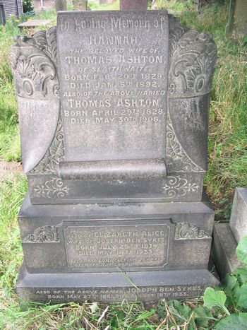 loving memory of Hannah the beloved wife of Thomas Ashton of Slaithwaite born