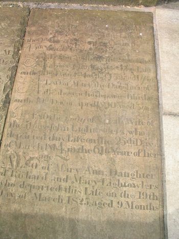 the body of Sarah the wife of the above John Lightowlers who departed this life