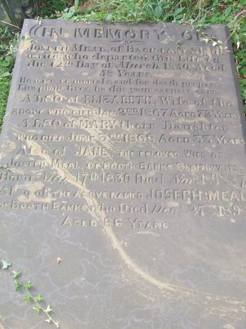 of Jane the beloved wife of Joseph Meal of Booth Bank Slaithwaite Born May 17th