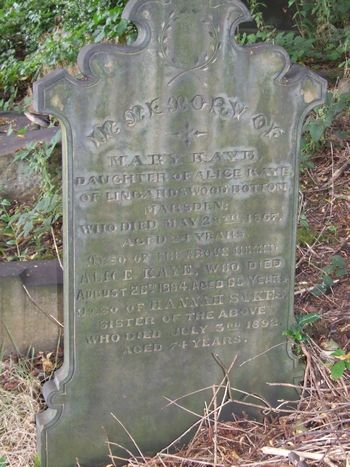 Memory of Mary Kaye daughter of Alice Kaye of Lingards Wood Bottom Marsden who