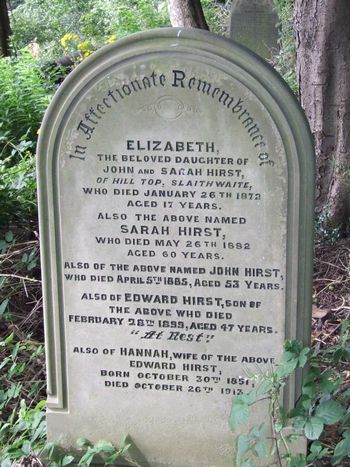 Hirst of Hill Top Slaithwaite who died January 26th 1872 aged 17