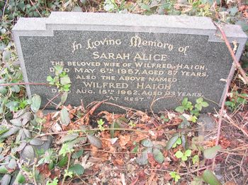 In loving memory of Sarah Alice the beloved wife of Wilfred Haigh died May 6th 1957 aged 87 years.