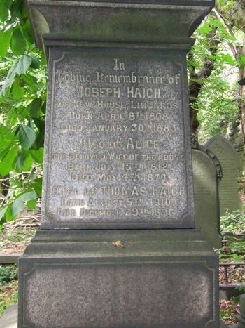 of Thomas Haigh Born August 5th 1810 Died December 29th