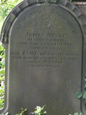 In Affectionate Remembrance of James Hoyle of Clough Golcar who died March 17th 1881 aged 60 years